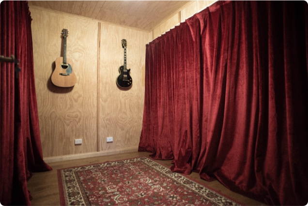Knoydart is our 150m2 (15x10) timber lined live room. Knoydart is perfect for string ensemble recordings, live recording, tour rehearsals and anything else that needs a stunning warm natural sound with lots and lots of reverb.